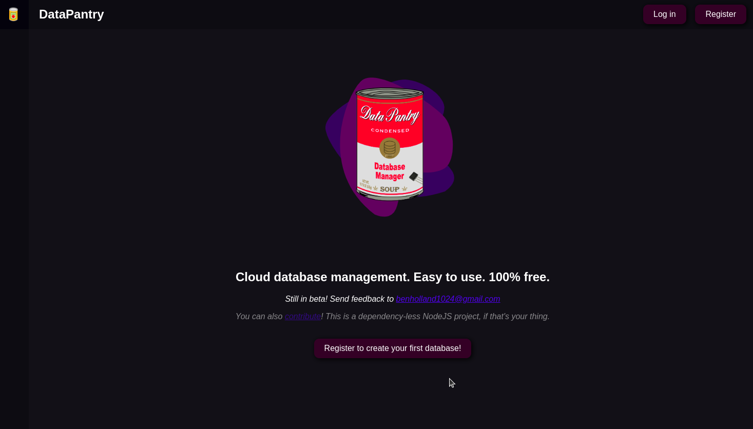 DataPantry.org is a database management website. Businesses can design their database using a schema diagram, then immediately use the Pantry API to access their database tables.